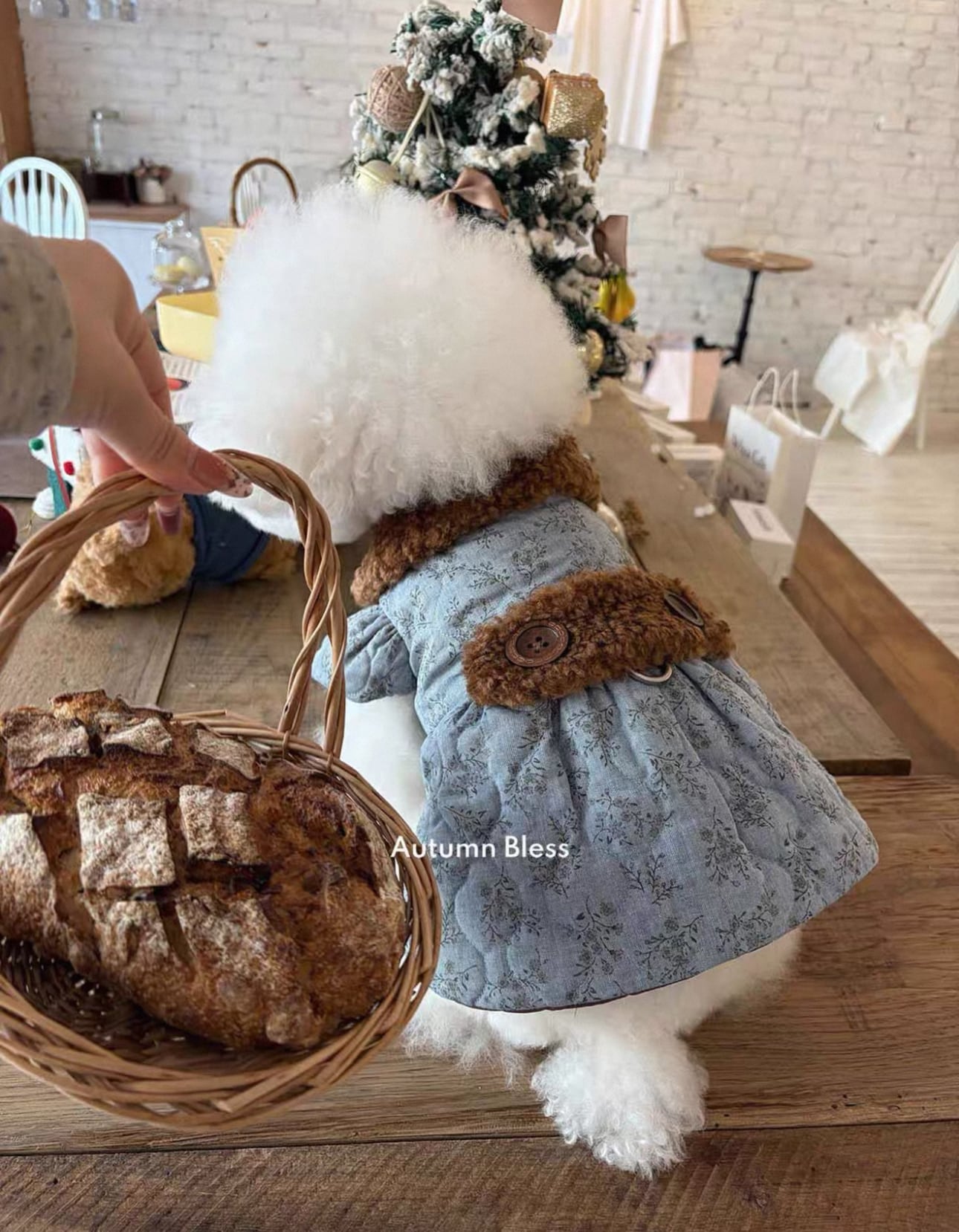 予約★【Autumn Bless】フローラルキルト ボアカラー ワンピース