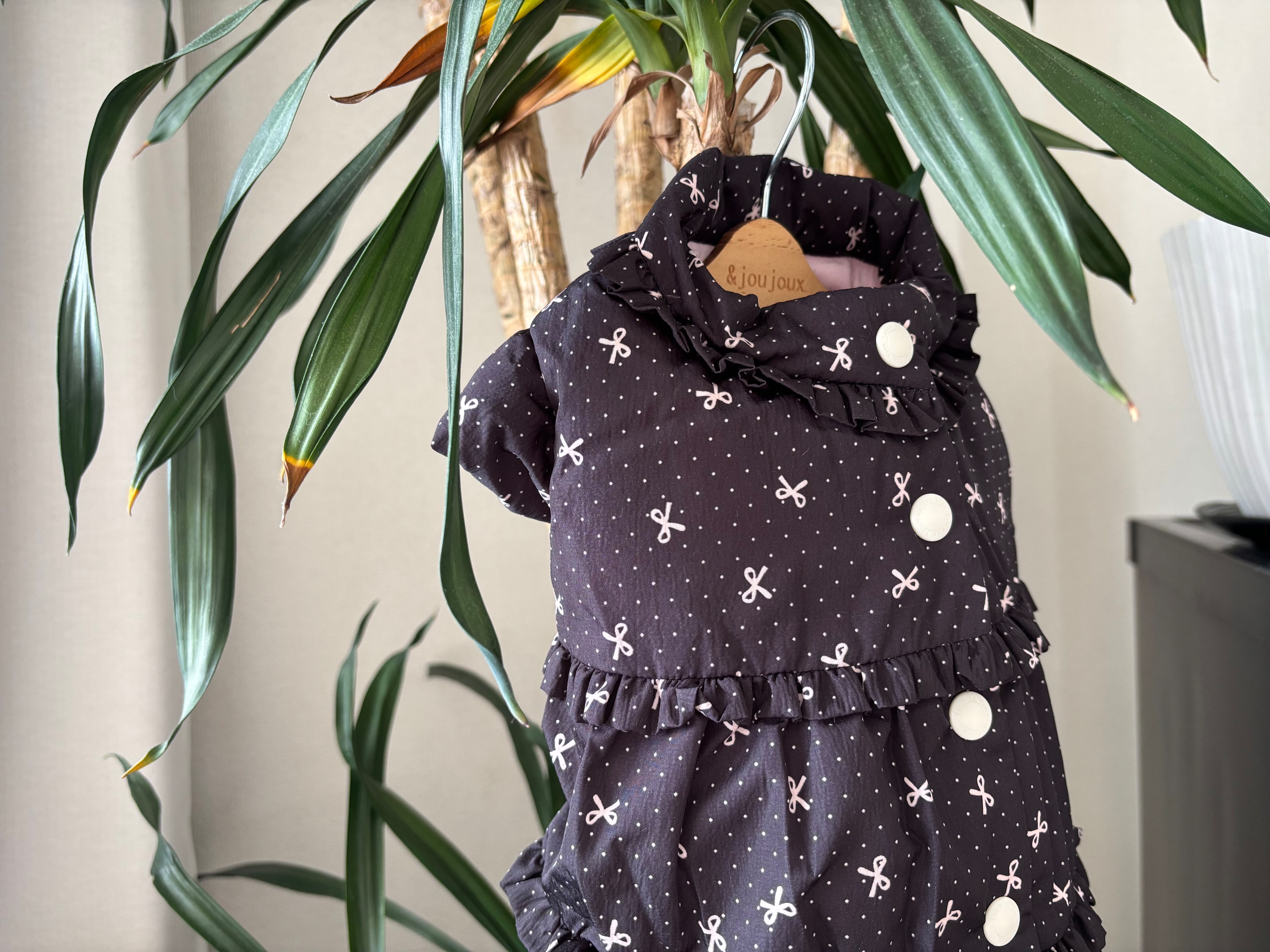 即納☆【Tani Wina】花柄フリル防水ダウンコートBlack Ribbon Dot Mサイズ