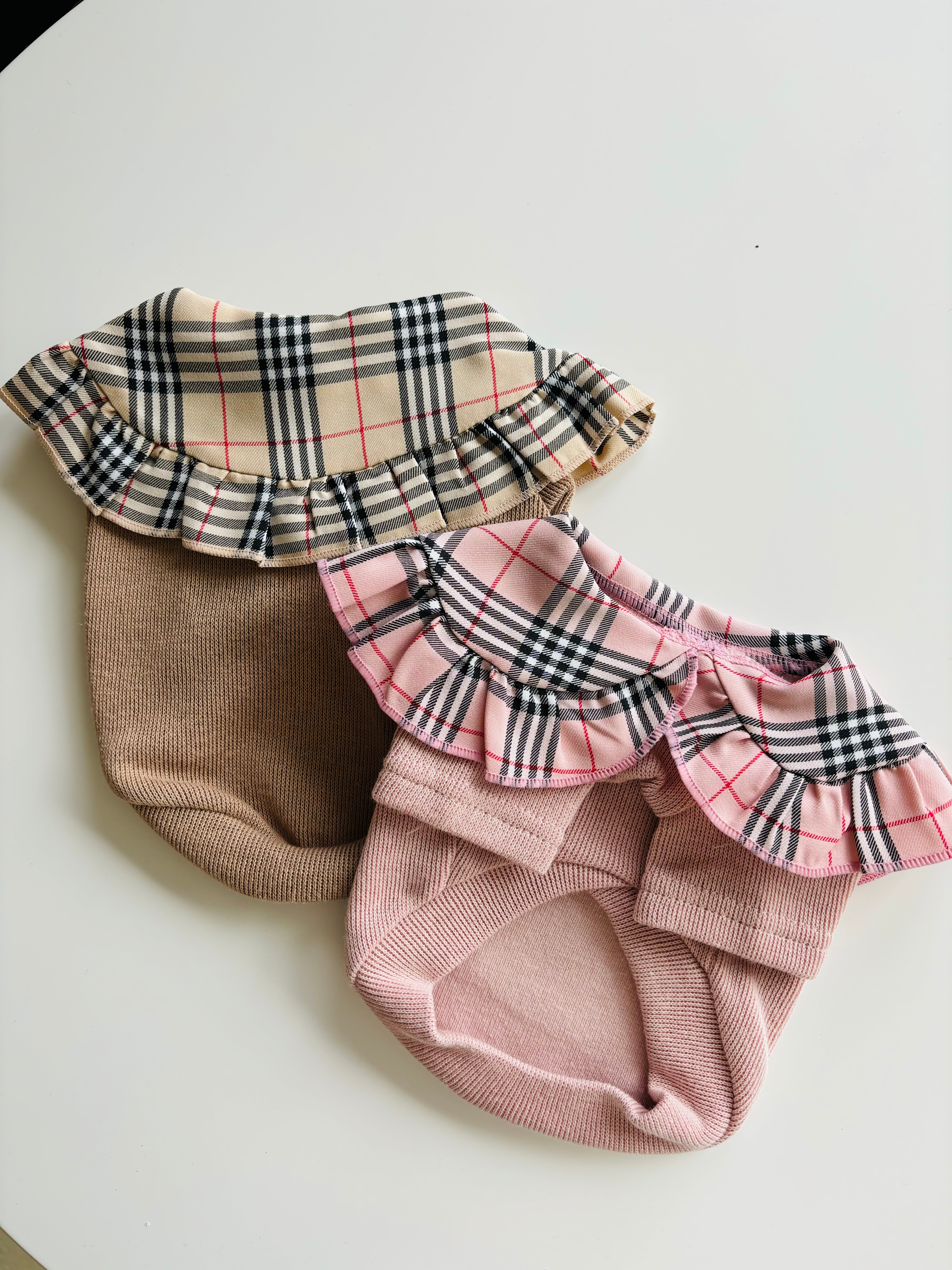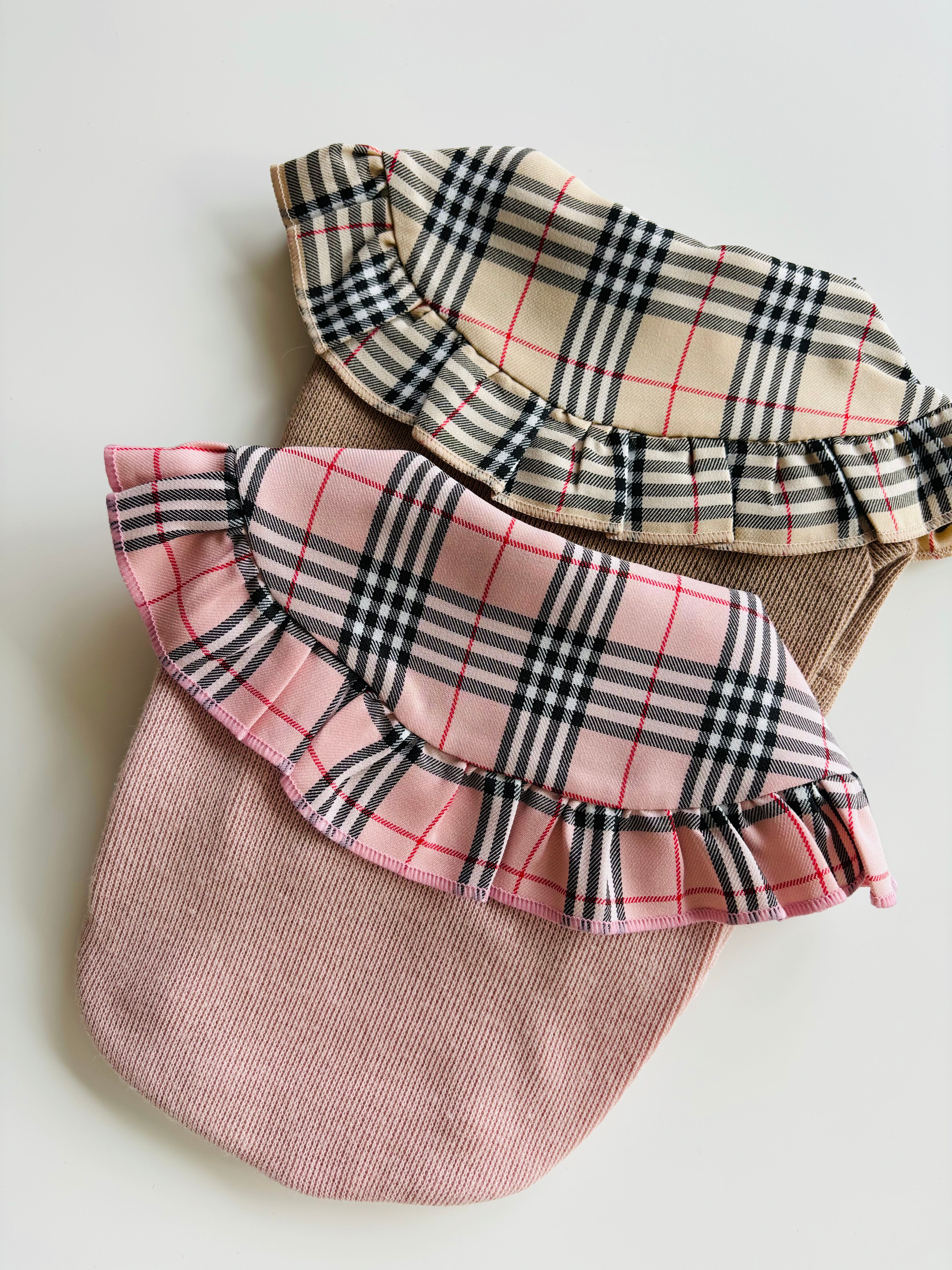 大きなチェックの襟が目を引く可愛いトップスです